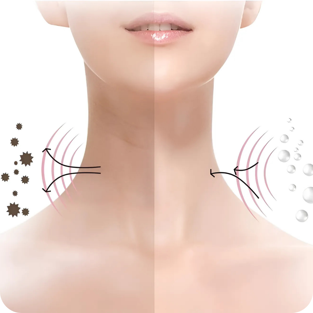 Nie ograniczaj się tylko do twarzy! Masażer doskonale sprawdza się również w okolicach szyi i dekoltu, poprawiając jędrność skóry i redukując oznaki starzenia.
